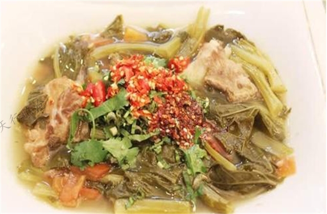 5.酸扒菜,是云南省臨滄市鎮(zhèn)康縣的特色風味美食,吃起來又酸又香又辣,非常爽口。