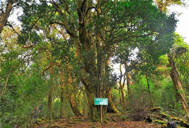 云南雙江古茶山國家森林公園內(nèi)分布的野生古茶樹及其更新群落,是目前發(fā)現(xiàn)的海拔最高、面積最廣、茶樹密度最大的群落,是世界茶樹起源中心的核心區(qū)域之一。