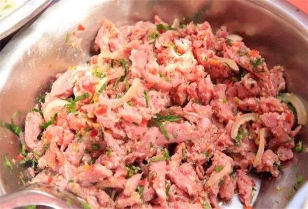 傣族酸肉可以說一道接待賓客的佳肴,這道菜,香辣適口,入口微酸,是傣家餐館一道獨具風格的主菜。除了耿馬和孟定,臨滄傣家風味的餐館都能夠吃到正宗的酸肉。