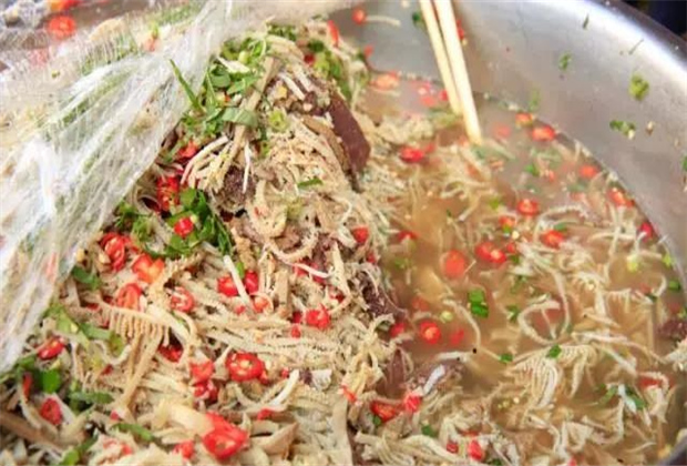 腸旺米線是云縣的知名小吃,很多臨滄人都是吃著腸旺米線長大的,在臨滄,百麗苑小區(qū)門口就有一家云縣腸旺米線,每天排隊的人不要太多。不僅臨滄人喜歡,很多外地人也喜歡。