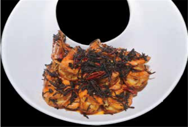 事實(shí)上,人類(lèi)吃茶的歷史也正是這樣的:咀嚼鮮葉、生煮羹飲,然后才是曬干收藏。羹飲,就是以茶入饌,制成“茶肴”?!安桦取钡某霈F(xiàn)最早見(jiàn)于《晏子春秋》:“嬰相齊景公時(shí),食脫粟之飯,茗菜而已。”中國(guó)是一個(gè)講究飲食的國(guó)度,《呂氏春秋》中即有“五谷為養(yǎng),五果為助,五畜為益,五菜為充,氣味合而服之,以補(bǔ)精益氣”。食藥同源是中國(guó)飲食文化的傳統(tǒng)。茶葉富有色、香、味、形的特點(diǎn),能調(diào)和滋味,增加色彩,又具藥理成分,因而,無(wú)論作為主料還是配料,茶和菜肴都是相得益彰的。