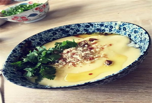 稀豆粉吃法十分豐富,云南各地的吃法也完全不同,充分體現(xiàn)了不同地區(qū)不同的飲食文化特色。地道的老昆明鐘愛稀豆粉配油條這種吃法,先將做稀豆粉的調(diào)料調(diào)配均勻,將炸得酥脆可口的油條用剪刀剪成長約10厘米左右的條,吃時用油條蘸著稀豆粉吃,油條的香脆與稀豆粉的香滑讓人難以割舍。在騰沖等地,稀豆粉餌絲也是頗受歡迎的食物,將騰沖特制的餌絲煮好后,將稀豆粉勺于其上,再加上各種調(diào)料拌食,雪白如絲的餌絲與黃艷細(xì)滑的稀豆粉相映成趣。會澤等地喜歡將稀豆粉飯食之道搭配蕎絲、洋芋粑粑等吃。臨滄人則喜歡將稀豆粉配攏米線來吃,將燙過的米線入碗,舀一勺稀豆粉淋在米線上,澆上醬油、鹽、姜末、蒜汁、油辣椒、花椒油、芝麻、青蒜葉,一碗稀豆粉米線就做好了。攪拌而食,色澤金黃,滑而易吸,味香爽口,成了臨滄人生活中一道不可或缺的風(fēng)味小吃。