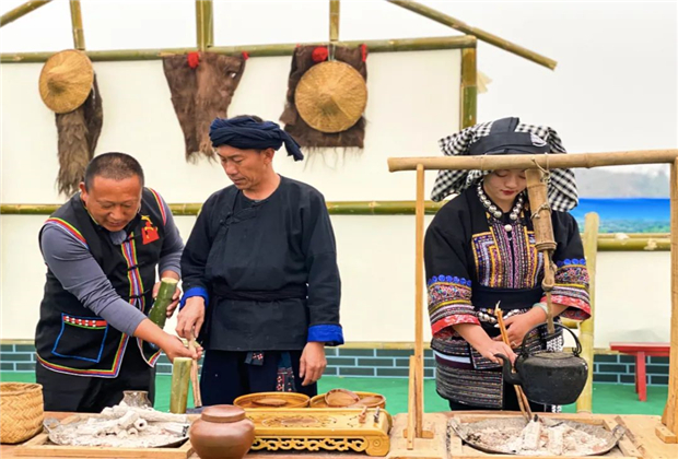 溫水、破竹、烘罐、烤茶、抖茶、洗具、雷響、苦渡、敬茶、收具,這十道工序,才算是正宗的俐侎人竹筒雷響茶制作茶藝展示。