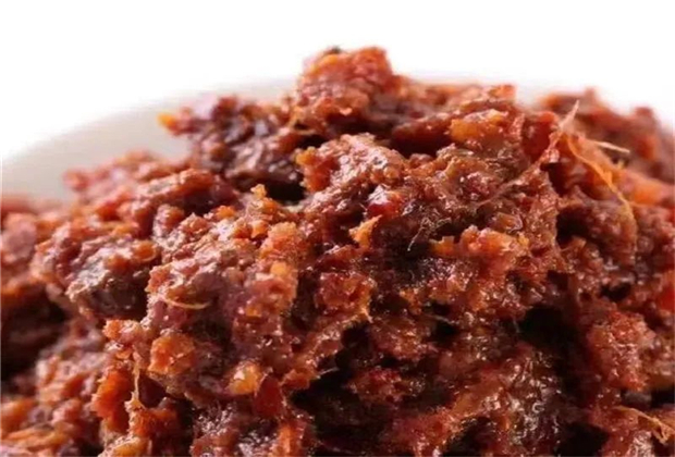骨頭參是一年四季都可食用的具有民族風(fēng)味的咸菜,也是永德百姓喜愛的傳統(tǒng)美食之一。用剁刀把新鮮的豬排骨、脊梁骨、五花肉等剁碎,加入草果粉、料酒、食鹽等調(diào)料充分?jǐn)嚢韬蠓湃胩展拗袎簩?shí)密封,置于陰涼干燥處放置半年即可食用。腌制好的骨頭參,可煮面條,亦可煲湯,美味還未入口時,只是看著就讓人垂涎三尺。