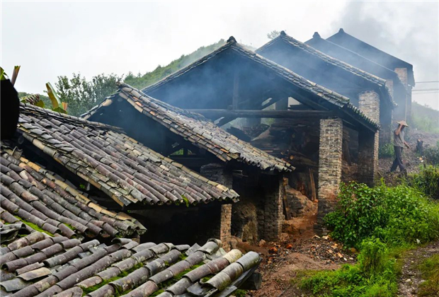 一個雨季我走進碗窯村,十字路口的老龍窯向上婉蜒盤踞在半坡上,龍窯冒著灰色的濃煙,在這樣一個雨季顯得古樸而神秘。正在燒窯的大叔說:“以前我們小時候,每逢燒窯就拿地里的苞谷、洋芋來烤,小朋友都過來玩!”現(xiàn)在的龍窯口依然有苞谷、洋芋散發(fā)著誘人的香氣,但是烤制的小孩已變成白發(fā)蒼蒼的老人。