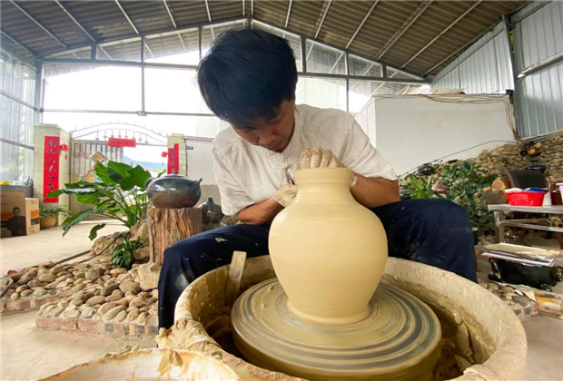 2019年碗窯村開辦了第一屆“云南臨翔國際柴燒創(chuàng)作營”,讓陶藝一詞走進了碗窯老手藝人的生活?!疤沾伤囆g”是一門綜合藝術,它與繪畫、雕塑、設計、以及其他工藝美術等有著無法割舍的傳承與比照關系。現(xiàn)在有越來越多的碗窯手藝人前往景德鎮(zhèn)、建水學習陶藝,產(chǎn)品也更加精美。
