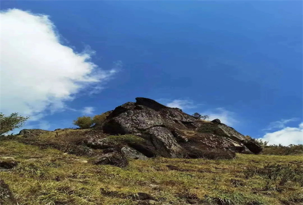 2公里之后進(jìn)入埡口草原,隨著海拔的上升氣溫也有所下降,坡度也大幅減緩漸漸進(jìn)入?yún)擦?,覆蔭率增高,徒步體驗感從艱辛過度到了舒服。約3.5公里處,鉆出密林,眼前是一片叢林懷抱的草原,避風(fēng)、向陽且開闊,草地中央有一株不知道已經(jīng)矗立了多少年高大蒼老的古樹,周邊層林疊翠,一個天然綠色的氧吧。春天白瑞香的香味彌漫,夏天是個柔軟的綠毯子,是中途休息、野餐的不二之選。