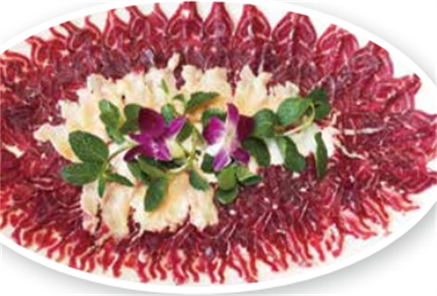 臨滄牛肉冷片也叫牛肉涼片,肉質精壯,鮮嫩爽口,滑而不膩,鮮香四溢,百吃不厭,是回族的傳統(tǒng)美食,以牛肉為制作主料,精心烹煮而成,原汁原味。臨滄人在食用牛肉冷片時通常會佐以蘸碟,蘸碟的配制也頗為講究,干蘸碟用辣椒面、花椒面、食鹽、味精和其他香料配制而成;濕蘸碟則是用醬油、芝麻油、辣椒油、鹽、味精、花椒油、香菜、蒜泥、蔥花、薄荷、香料等調制而成。其鮮美可口,是老少皆宜的大眾美食。臨滄的許多餐館里都有牛肉冷片這道菜,但相比之下,還是云縣、鳳慶等地回族餐館做出的牛肉冷片味道要更勝一籌。