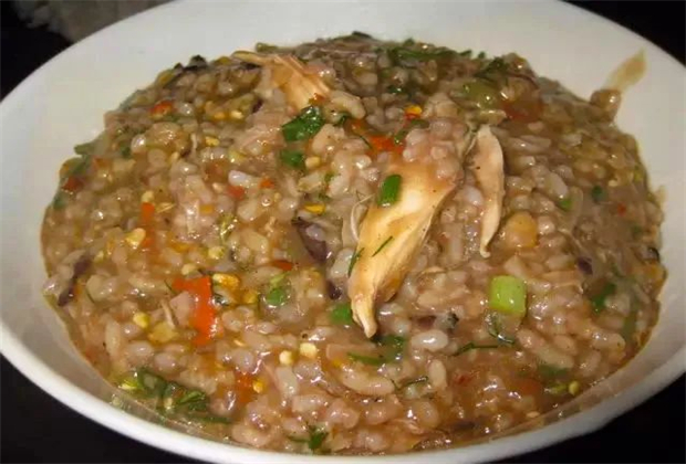 雞肉爛飯,佤族語(yǔ)稱“木艾亞”,是佤族菜譜中最著名的一道菜,也是佤族待客的上等佳肴,因其比稀粥要稠一些,由經(jīng)過(guò)加工的雞肉混合,故俗稱雞肉爛飯,紅血雞肉爛飯顧名思義,就是加上雞血的雞肉爛飯。