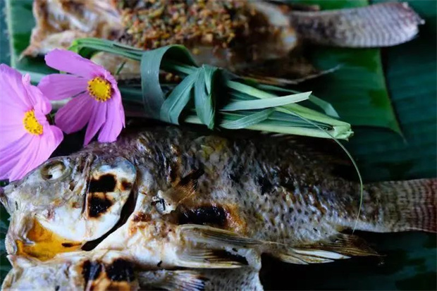要說雙江羅非魚的吃法,第一想到的就是香茅草烤魚,將羅非魚用刀將魚從頭至尾劈開,注意只是切開魚背,把魚洗凈,用鹽巴加蔥姜水腌制半小時(shí),烤制時(shí)用香茅草捆綁?mèng)~身一起烤制。將蒜末、小米辣、阿佤芫荽、韭菜、香菜以及3-4棵香茅草切碎,加入青花椒、鹽巴用舂筒搗碎制成調(diào)料備用。待魚烤好前加上調(diào)料刷上菜籽油一起烤制發(fā)出香味,一條焦香撲鼻的香茅草烤魚就呈現(xiàn)在眼前。要說好不好吃,還得待您親自到雙江來品嘗。