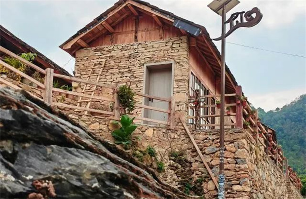 氤氳起洞壑,度徑帶煙浮。云遮霧繞使得山里的陽光些許短暫,站在村口高地一眼望去,時(shí)光仿佛凝滯,石板房百余年來從未變過,淺黃色的石墻,深褐色的木架,上面蓋著青灰色石頂,呈現(xiàn)出一字、二字或開口式院落布局。遠(yuǎn)處升起一縷炊煙,是人間煙火,也是遠(yuǎn)離俗世的仙境。