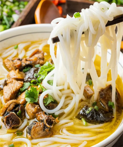 云縣雞肉米線講究“三料一湯”。三料即主料、輔料、佐料。主料是滇西優(yōu)質(zhì)稻米制成的米線,質(zhì)地細(xì)軟而有韌性,口感甘醇。輔料則是山地烏骨雞,肉質(zhì)鮮美,原汁原味。佐料則包括辣椒油、阿佤芫荽、蔥、醬油、味精等,讓整碗米線更加鮮美可口。