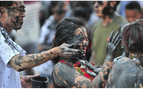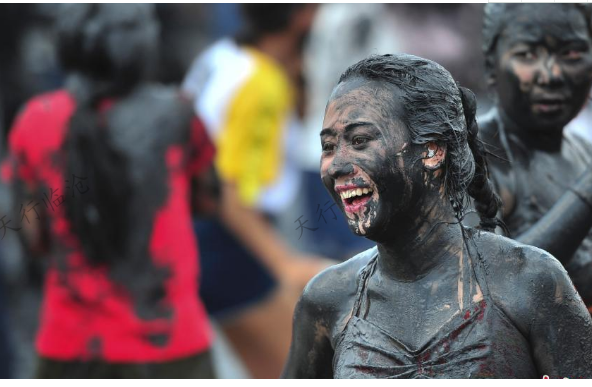 摸你黑狂歡節(jié)是自2004年以來滄源縣委、縣政府著力打造的一個大型旅游文化節(jié)慶活動,于每年的5月1日到4日在美麗的滄源縣城舉行。圖為把黑泥涂滿全身的姑娘們。