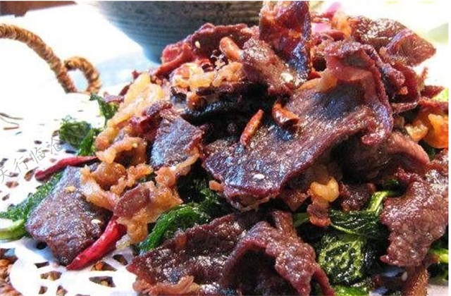 9.牛干巴,是臨滄?zhèn)鹘y(tǒng)小吃,味道香美、嚼勁十足。