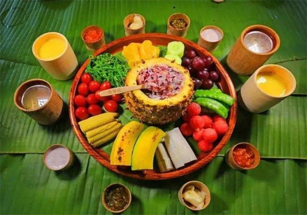推薦美食瀾滄江江魚(yú)、江蝦、特色土雞、山珍野菜、佤王宴、雞肉爛飯、手撕雞、傣味手抓飯。