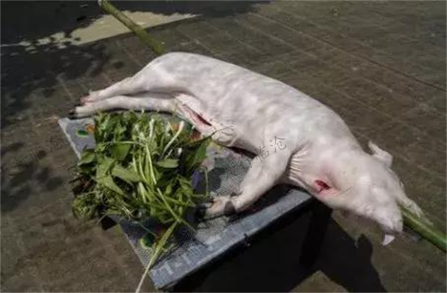 臨滄的傣族的火燒豬是整個(gè)豬都烤熟,連皮帶肉一起吃! |