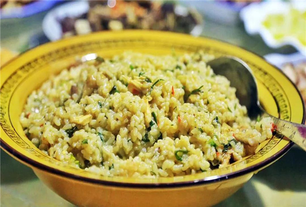 佤族的雞肉爛飯可以說已經(jīng)是家喻戶曉的美味了……吃一碗雞肉爛飯,這一份香甜可口,伴隨著阿瓦芫荽特有的香味,仿佛穿越在山林之中。在臨滄,各大美食城和江山部落都可以吃到這一碗香濃的雞肉爛飯。