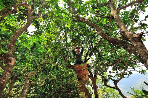 相傳,拉祜人在打獵時迷路,吃光所帶的水和食物后,為了保命,隨手在森林里抓了幾片葉子放進(jìn)嘴里嚼,意外發(fā)現(xiàn)這些葉子不僅清香可口,嚼完后還能使人起精神來。這種葉子就是茶葉。南美拉祜族鄉(xiāng)栽培古茶樹主要分布于坡腳村,約300畝,品種為勐庫大葉茶。野生的古茶樹群落則分布于坡腳村仙人山、鐵廠箐和南華山等原始森林中,是臨翔區(qū)野生茶樹的代表性群落。這里的野生茶樹種群密度高。最粗的1號大茶樹基圍230厘米、樹幅15米×13米、高20米。在走訪的過程中,我們發(fā)現(xiàn)南美有一片數(shù)千畝的老茶園,樹干的高度與樹干的根粗,均是300年以上的古樹才能達(dá)到。古茶園成片生長,茶園分布以家為單位。偶遇的一位茶農(nóng)說:“基本都是一家人有幾十棵大茶樹,這個是祖輩留下的。好多人都來看大茶樹?!薄?拉祜人)平時喜飲烤茶?!闭f起茶,茶農(nóng)非常熱情??静?,拉祜語叫“臘扎奪”,是一種古老的飲茶方法。用陶制小罐把茶葉烤香,然后注入滾燙的開水,茶在罐中沸騰翻滾,發(fā)出一陣陣唏唏聲響,這叫吃烤茶。如果有客人來了,必須烤茶招待,煮出來的第一罐茶是自己飲,第二罐才是客人飲用。煮出來的第一道茶水主人自喝了,表示茶中無毒,請客人放心。煮出的第二道,茶味正濃,味道最好,所以用第二道茶招待客人。除了烤茶,拉祜人也吃糟茶?!痹悴枰彩抢葑逡环N非常古樸而簡便的飲茶方式。將鮮嫩茶葉采下后,加些水在鍋中煮半熟后,將茶葉取出置于竹筒內(nèi)存放,飲用時,取出少許放在開水中煮片刻即飲用。這種茶水略有苦澀酸味,有解渴開胃的功效。