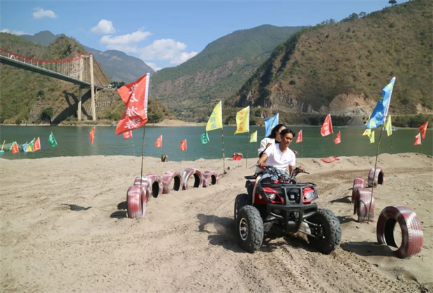現(xiàn)在這里建成了一系列親水游樂項目。白天可選擇座游船暢游百里長湖或在江邊垂釣,鯉魚、白鱗魚、面瓜魚、葉子魚等野生江魚應有盡有。還可以帶上孩子放飛自我騎一下沙灘摩托。夜幕降臨時,村子活動場所內(nèi)又會看到彝族、布朗族、傣族的村民們在和著笛子、三弦聲盡情地打著歌,打歌活動中還不時穿插上男女調(diào)子對唱,整個打歌場一片歡騰,讓人領略到了瀾滄江畔多姿多彩的民族風情。