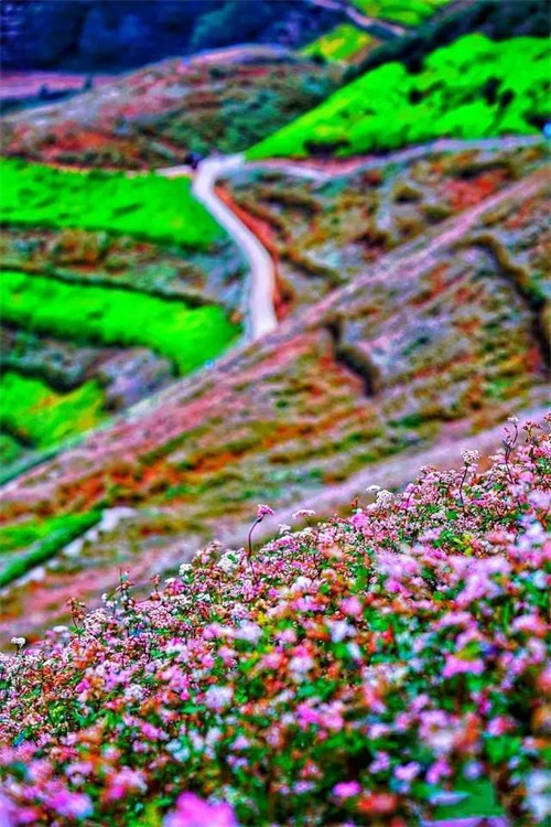 在鳳慶 有這樣一個(gè)地方 大自然仿佛被打翻了調(diào)色盤 二月的勐佑是金黃色的 油菜花海滿目金黃阡陌香 五月的云上花海是碧色的 白色的蕎麥花在山風(fēng)下 熱烈的綻放 如白色的泡沫在海中碧浪里翻滾 驚艷往往就在一瞬間發(fā)生 又回歸平靜