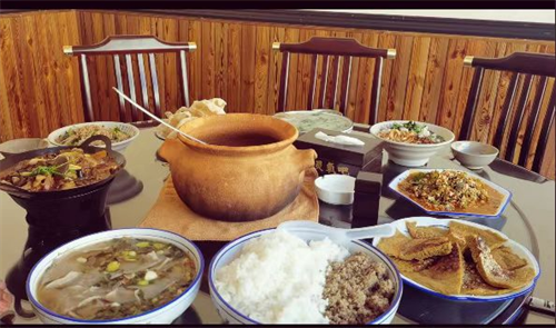 豐收過后粒粒蕎麥在家人們巧手制作下變成了系列蕎產(chǎn)品,你瞧一碗碗熱氣騰騰勁道滑爽的蕎米線、蕎面條、蕎麥芙蓉湯,一個(gè)個(gè)香糯可口的蕎粑粑,一片片香脆甜美的蕎干郎,一杯杯回味無窮的蕎茶、蕎酒,加上這一鍋暖心暖身的土鍋燉山雞,在當(dāng)?shù)厝嗣袂墒峙腼兿拢诨鸸馀c時(shí)光中,散發(fā)出一種神奇的香味,幻化成一種色香味俱全的美食。夜幕降臨,一桌葷素搭配夾雜著蕎香的云上花海特色養(yǎng)生餐呈現(xiàn)在眼前。