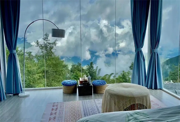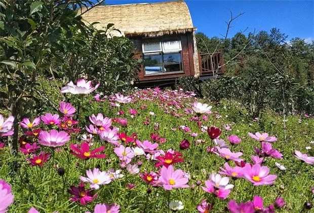 清晨可在觀景客房內(nèi)賞云海翻滾、日出朝霞滿天;夜幕降臨,浩瀚星河,清晰可見。這里,四季皆有花草相伴,餐餐小菜來自鄉(xiāng)野田園。