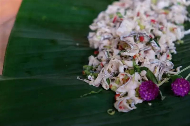 要說雙江羅非魚的吃法,第一想到的就是香茅草烤魚,將羅非魚用刀將魚從頭至尾劈開,注意只是切開魚背,把魚洗凈,用鹽巴加蔥姜水腌制半小時(shí),烤制時(shí)用香茅草捆綁?mèng)~身一起烤制。將蒜末、小米辣、阿佤芫荽、韭菜、香菜以及3-4棵香茅草切碎,加入青花椒、鹽巴用舂筒搗碎制成調(diào)料備用。待魚烤好前加上調(diào)料刷上菜籽油一起烤制發(fā)出香味,一條焦香撲鼻的香茅草烤魚就呈現(xiàn)在眼前。要說好不好吃,還得待您親自到雙江來品嘗。