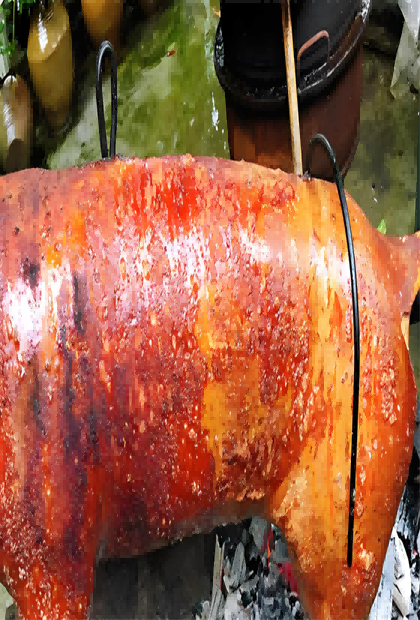 火燒豬:火燒豬是拉祜族的重要節(jié)慶食品,尤其是在重大節(jié)日和慶典時(shí)更是不可或缺。整只豬經(jīng)過(guò)處理后,用柴火慢慢烤制,烤制過(guò)程中不斷刷上特制的調(diào)料,直至外皮酥脆金黃,肉質(zhì)鮮嫩多汁,味道濃郁。