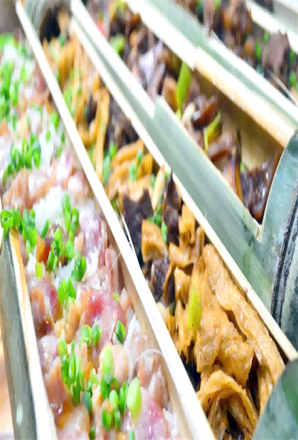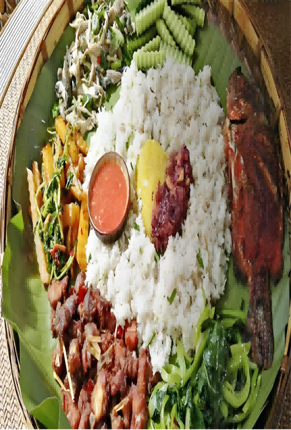手抓飯:手抓飯是傣族的重要傳統(tǒng)美食,尤其在潑水節(jié)期間備受歡迎。手抓飯使用糯米制成,蒸熟后加入各種調(diào)味料,如香菜、薄荷、洋蔥、花椒和酸辣調(diào)料等,再搭配魚(yú)、肉或蔬菜等佐料拌勻。手抓飯口感糯軟,味道酸辣可口,色彩鮮艷,非常開(kāi)胃。