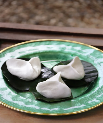 在云南省臨滄市臨翔區(qū)平村彝族傣族鄉(xiāng),有一道傳統(tǒng)小吃——三角粑粑,當(dāng)?shù)赜址Q為“三尖角粑粑”,這是一種用米面包裹多種餡料制作而成的蒸制美食。三角粑粑皮薄餡多、鮮美香甜、糯而不膩,吃一口就甜到心里。該項(xiàng)制作技藝被列入臨翔區(qū)第三批非物質(zhì)文化遺產(chǎn)代表性項(xiàng)目。米浸泡一夜后磨成米漿,把米漿放入紗布內(nèi)瀝干水分,就會(huì)得到濕米粉。取十分之一的濕米粉用水煮,將煮熟的濕米粉與剩下的濕米粉混合后充分揉勻,平村三角粑粑外皮軟糯但不失韌性的秘訣就在于此。小火慢炒花生,炒香后摏碎加入紅糖或白糖混合均勻,香香甜甜的餡料就準(zhǔn)備好了。接下來就是定型環(huán)節(jié)了,取一小份米粉捏成杯狀,把餡料放入米粉杯中,封口后捏成三角形狀,這是個(gè)熟能生巧的過程。最后就是蒸制環(huán)節(jié),將捏好的三角粑粑放在粑粑葉上,放入鍋中蒸熟即可。
