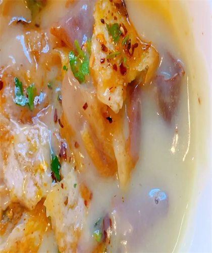 制作過程更是匠心獨(dú)運(yùn)。米線用滾湯燙熱撈出,加入新鮮雞肉湯,再蓋上鹵雞汁雞塊。紅紅的辣椒油、翠綠的阿佤芫荽、金黃的蔥花……一碗色香味俱佳的云縣雞肉米線就呈現(xiàn)在眼前了。云縣雞肉米線的最大亮點(diǎn)在于雞肉。燉得香濃的烏雞肉散發(fā)著誘人的香氣,口感有嚼勁、肉緊、雞皮入口即化。此外,鹵雞腿、雞翅等也是不可或缺的配料。而豬皮油辣子則為整碗米線增添了不少主角光環(huán)。雞血的鮮嫩和油辣子里豬皮的脆爽口感相得益彰,讓人回味無窮。